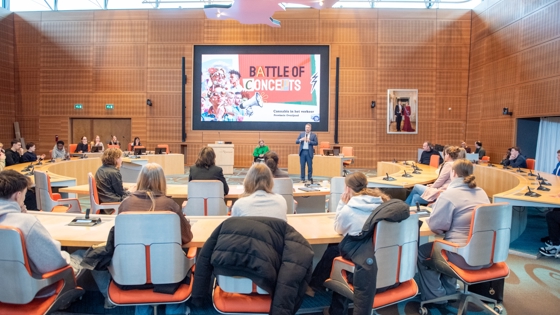 Je campagneplan presenteren in de Overijsselse Statenzaal op het provinciehuis in Zwolle, dat is best spannend! Zo’n 15 tweedejaars studenten van het Deltion College deden dit.